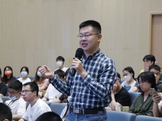 在交流提问环节,现场提问踊跃,气氛活跃。王焰新院士与现场师生就专业内容、学科发展以及教育育人等话题展开了热烈讨论。