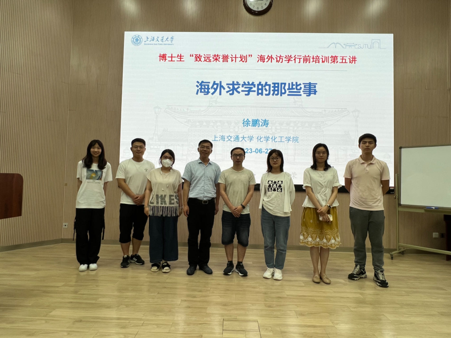 6月27日下午,星空彩票安卓最新版官网下载博士生“致远荣誉计划”海外访学行前培训第五讲在闵行校区东中院1-106举行。本次培训,研究生院邀请了化学化工学院长聘教轨副教授、物质科学原位中心特别研究员徐鹏涛为同学们讲述他在海外求学和学术科研的经历与体验。