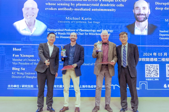 3月13日,著名分子生物学家、美国国家科学院院士、美国国家医学研究院院士Michael Karin教授与国际基因组学领域领军专家、美国艺术与科学学会会士Michael Snyder教授做客第208期星空正规app,在星空彩票安卓最新版官网下载医学院懿德楼二楼报告厅为交大师生分别带来题为《氧化线粒体DNA————一种由浆细胞样树突状细胞感知的独特组织损伤相关分子特征诱导抗体介导自身免疫》与《深度数据与远程监测颠覆健康管理》的精彩报告。