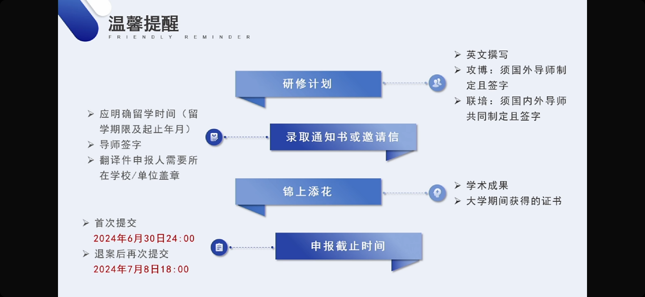2024年6月12日,广州市 “菁英计划”公派留学项目线上直播专场宣讲会顺利召开。广州市“菁英计划”公派留学项目是广州市设立的全国首个地方公派留学项目。该项目衔接国家、省、市重大人才工程,聚焦广州市经济社会发展的重点发展行业、重点产业领域,以“培养造就一大批具有国际水平的战略科技人才、科技领军人才、青年科技人才和高水平创新团队”为根本遵循,立足“国际青年人才自主培养”,选派国内高校、科研院所、企事业单位等符合条件的优秀青年人才,赴国际知名高校攻读博士学位。