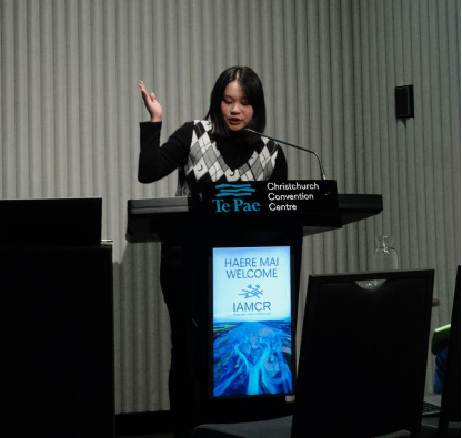 Under the guidance of her advisor, Prof. Wu Fang, KISAN MIYAZAKI wrote her first conference paper. Despite having no prior experience in English academic writing, she persevered through challenges with the support of her advisor and peers. Ultimately, her paper, authored as first author, was accepted by IAMCR 2024, a top-tier international conference in communication studies, and presented in person at the July 2025 conference in New Zealand.