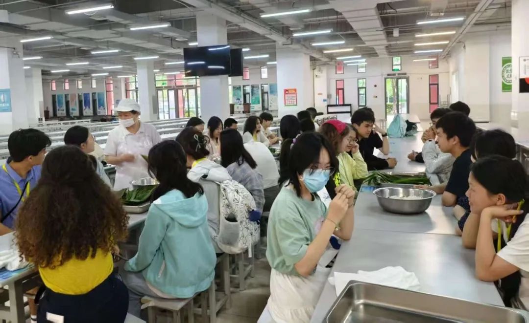 在华东师大二附中紫竹分校举办的端午节文化体验活动中,暑期学校的学员们与华二紫竹的同学们共同参与了一场别开生面的包粽子活动。