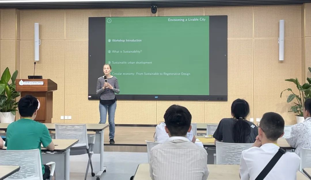 本次暑期学校特邀阿姆斯特丹大学研究员Aline Chevalier担任主讲嘉宾,她围绕“可持续发展”主题,为学员们带来了一场兼具国际视野与本土实践的学术盛宴。课程不仅涵盖可持续发展理论与政策框架,更通过创新工作坊引导学员运用思维导图分析上海大都市与浙江余村的可持续发展现状,并提出本土化解决方案。