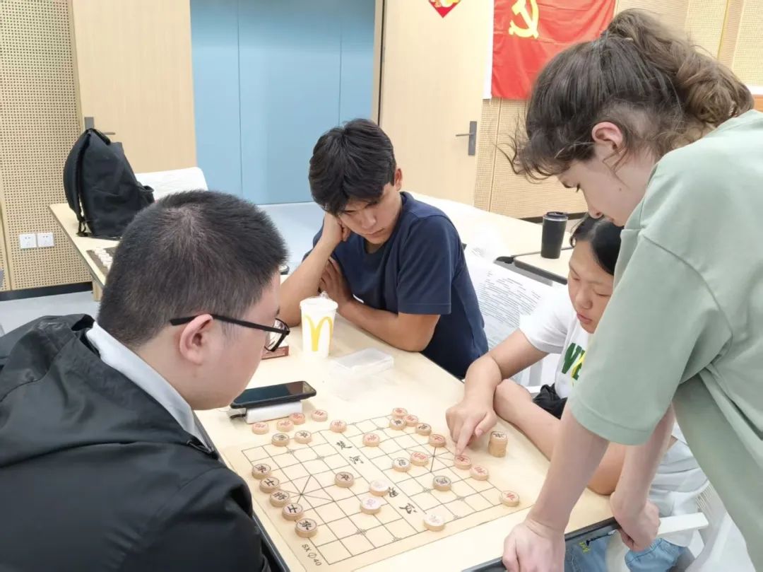 周末,暑期学员和学院同学们一起开展了桌游交流活动。大家围坐在一起,切磋中国象棋、围棋和几款法国桌游。中法学子互相讲解游戏规则,在方寸棋盘间展开智慧较量。