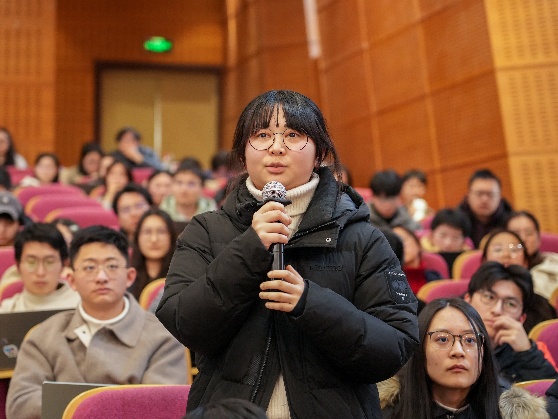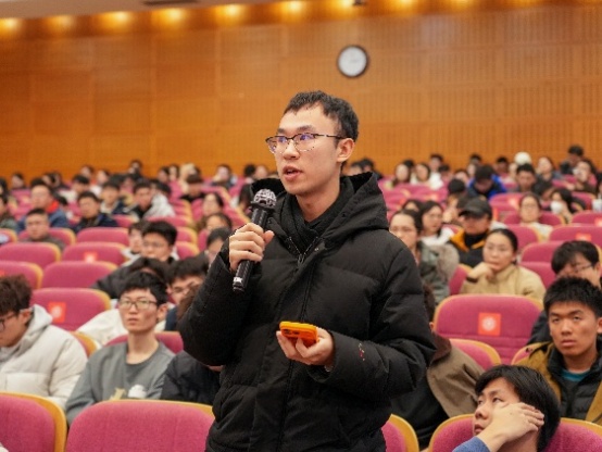 随后,杨烨作国家公派研究生项目总体介绍及政策解读。她系统阐述了2026年国家公派留学项目的项目体系、选派类别、资助情况及申报要求,并结合当前国际形势与国家人才战略需求,分析了公派留学在培养高层次国际化人才方面的重要意义。杨烨与吴凡还共同与现场同学进行互动交流,针对申请流程、学科布局、评审标准等同学们普遍关切的问题给予细致解答。