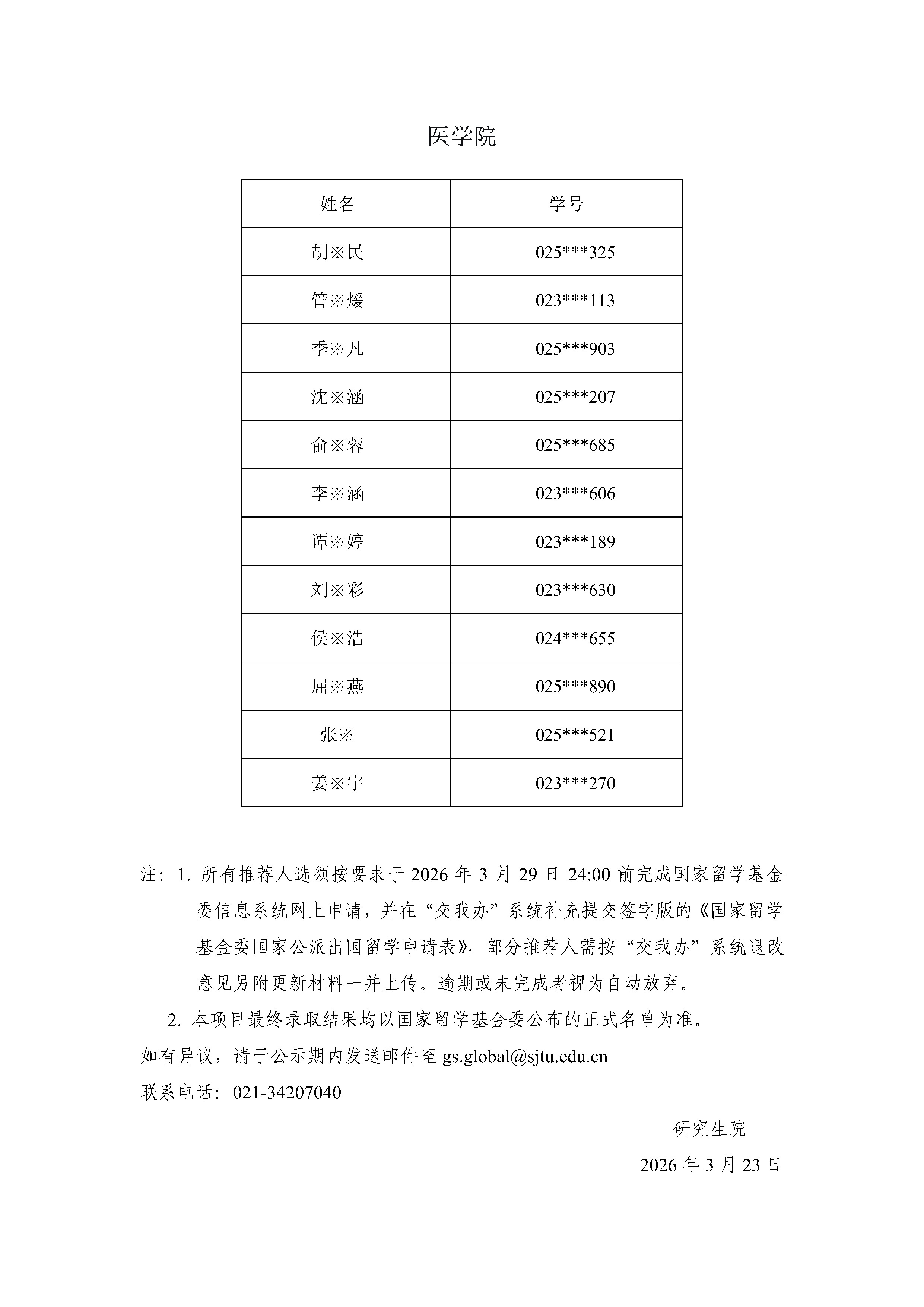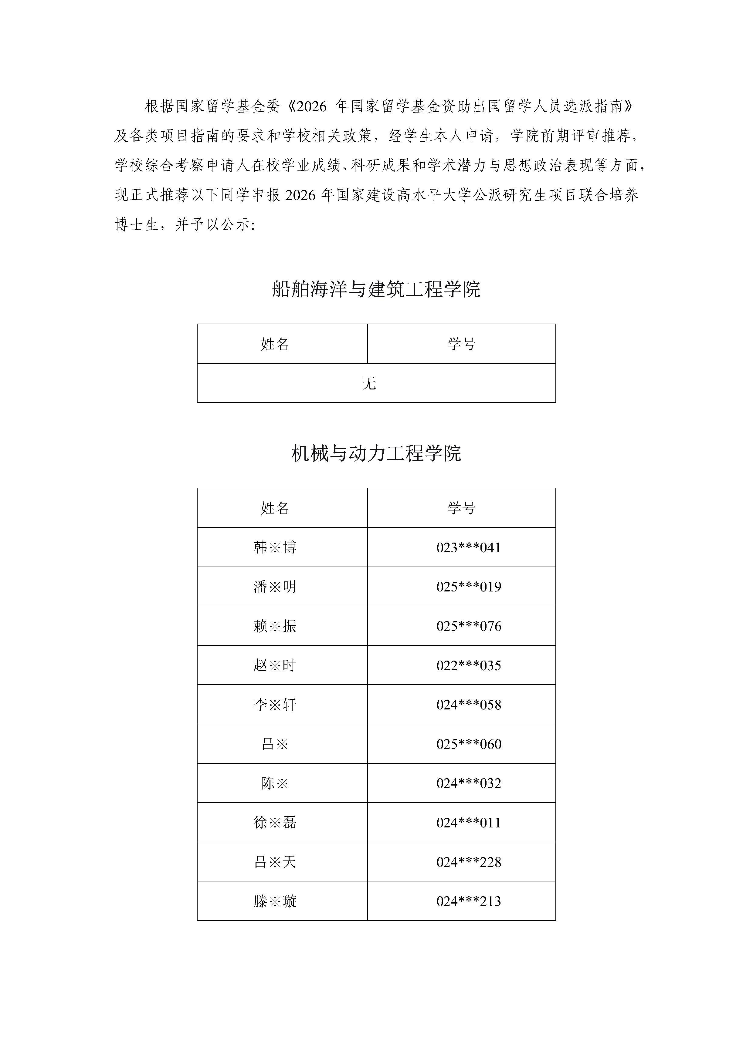 2026年国家建设高水平大学公派研究生项目联合培养博士校内评审拟推荐人员公示